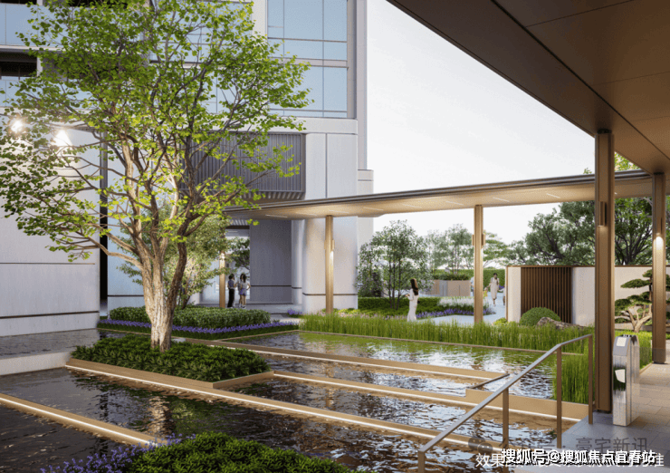 罗汉松+小叶紫檀水景迎宾,归家见水,别有洞天。