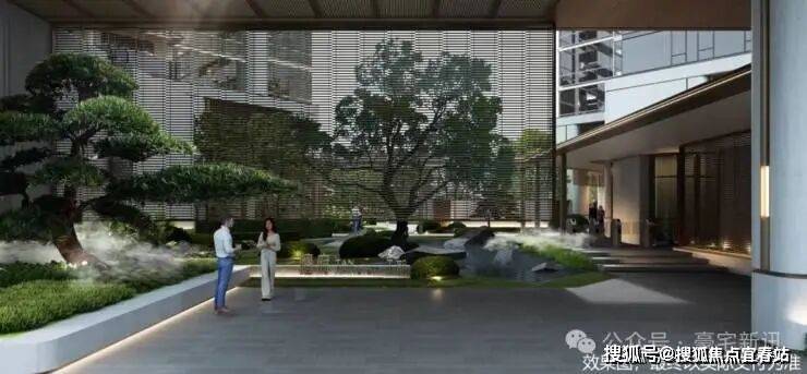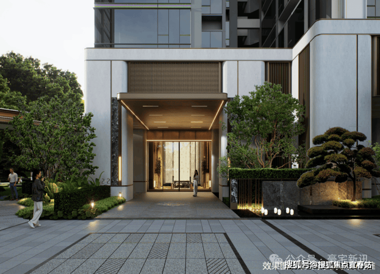 石材景墙+艺术水景+小叶紫檀组景,豪宅级归家体验。