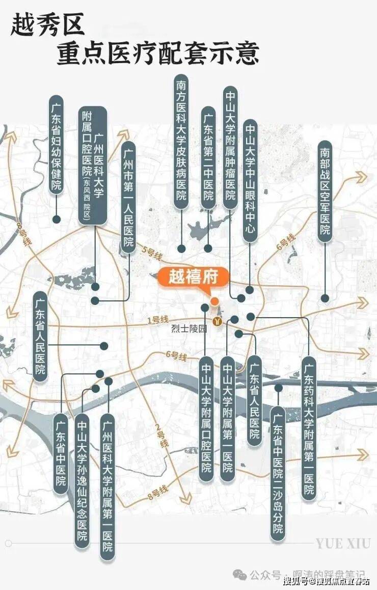 越秀区内有14家知名三甲医院(车程10分钟内),占全市数量的约40%