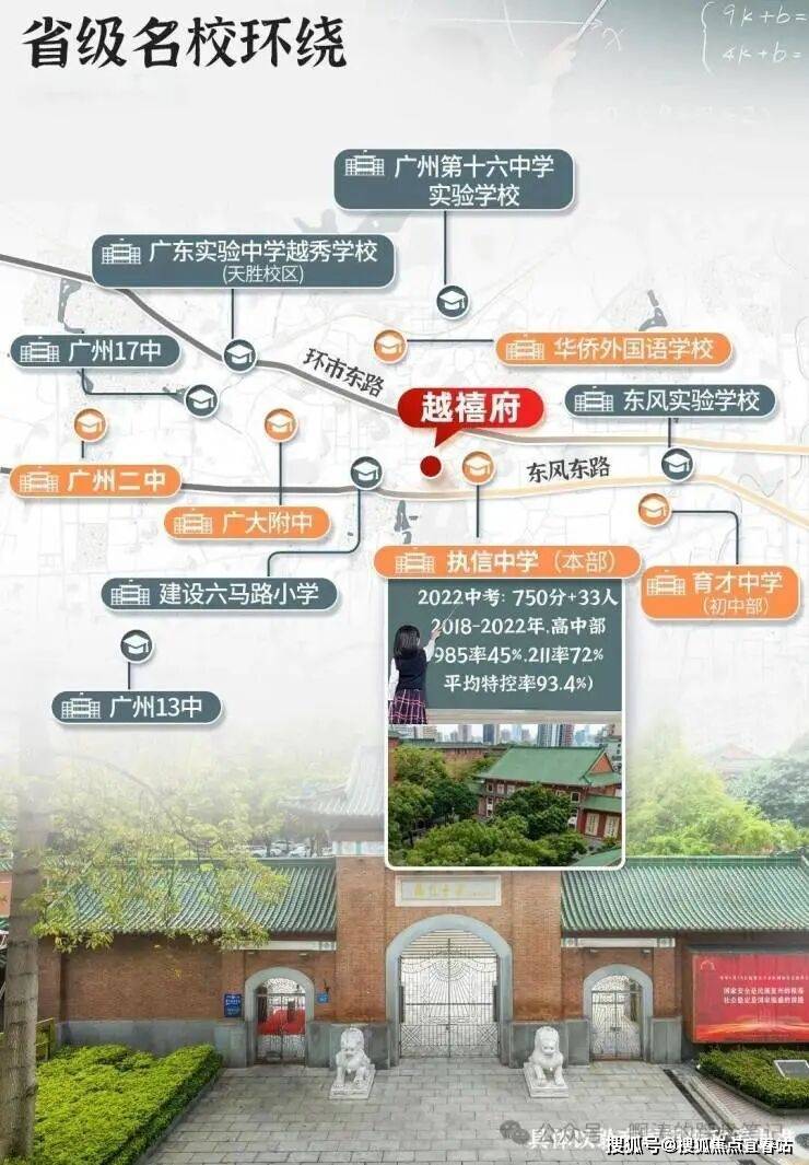 (根据2023年小升初报读指南参考)摇号对位10所中学,其中6所省级名校包括:执信中学本部(高中重本率99%,600分以上86%)、育才中学、华侨外国语学校、第二中学、广大附中、十六中学