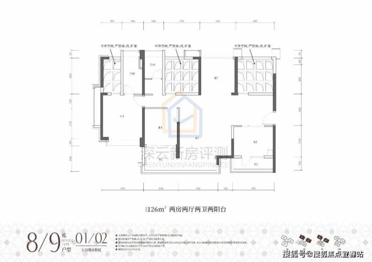 ①高阔奢享:建面约86-176㎡墅境宽宅,改善型三房四房,全南向户型天然舒适;两梯三户低梯户比,多阳台露台设计,悦享阔绰居住空间;方正户型结构搭载更多半开放设计,高阔空间实用率与灵活性大幅提升。