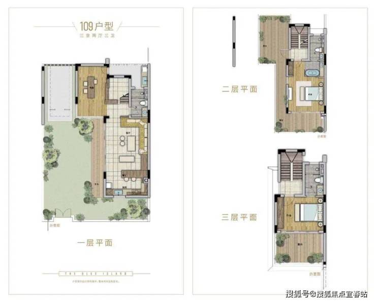 拥有3层空间,配备3间套间,每一层均可享受超大户外空间相连,将室外绿意,最大化引入室内。