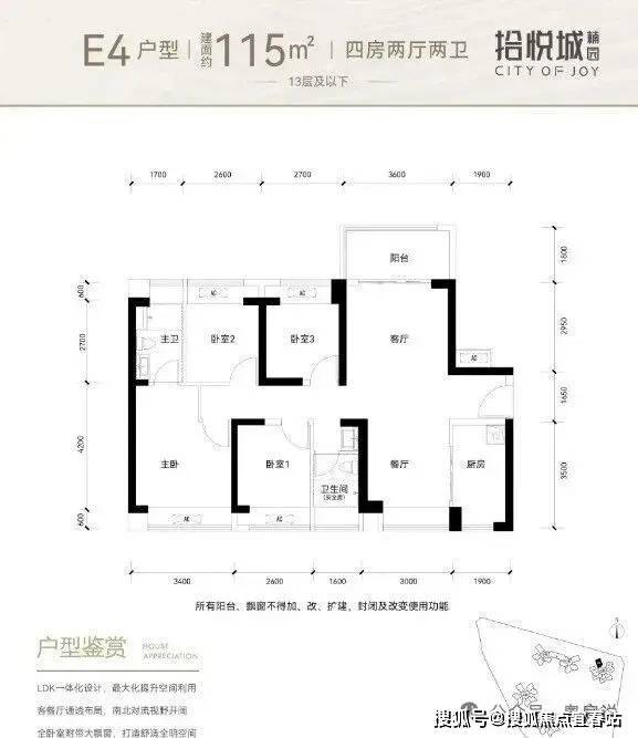 其中115㎡与126㎡外形结构与内部功能间布局基本一致,126㎡户型可看作是115㎡户型的放大版,都是竖厅、动静分区的,居住舒适性、实用性、通透性、静溢性各方面都比较好。
