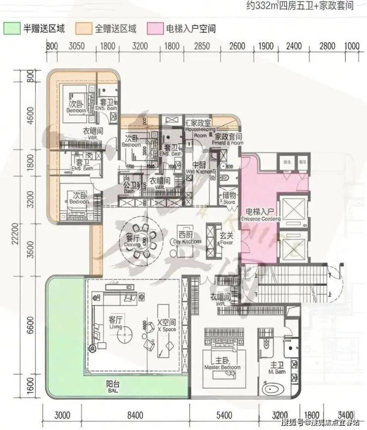 四、主打户型解析:140-332㎡纯四房,定义顶豪舒居尺度