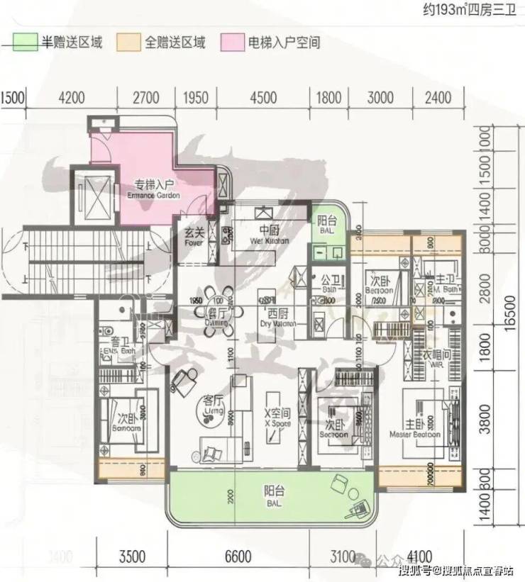 2. 168-193㎡四房三卫(2梯2户/3梯3户,适配进阶改善家庭)