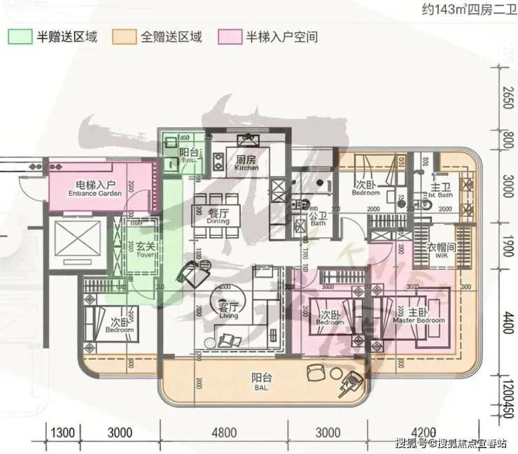 1. 140-143㎡四房两卫(3梯3户,适配入门级改善家庭)