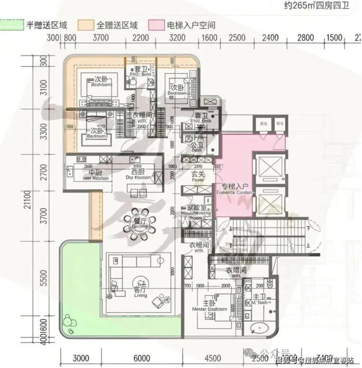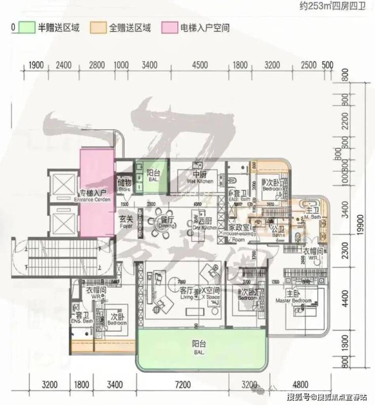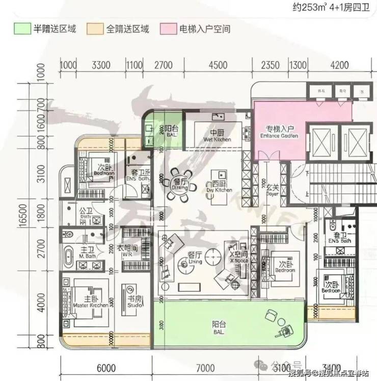 3. 253-332㎡四房四卫/五卫(2梯2户板楼,适配终极顶豪家庭)