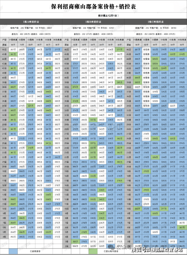 下面小编还特意做了份保利招商雍山郡全套的备案价格+销控表,供大家参考,楼盘折扣随时会变动,如果需要该楼盘最新的折扣体系,最新的栋数房号销控表,以及全套的房号折后价格表,都可以联系小编。