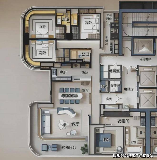 5梯2户:近乎私梯的配置(平均2.5梯服务1户),出行便捷无忧。适合追求极致空间体验与顶级服务的家族或精英领袖。