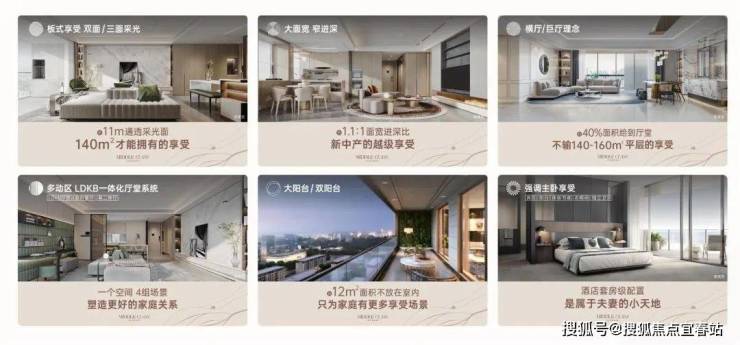 高定户型元素|创新LDKB一体化奢阔空间、双采光面景观巨厅、可分可合餐厨、大尺度纵深长阳台等