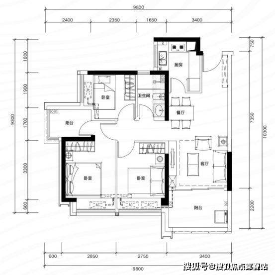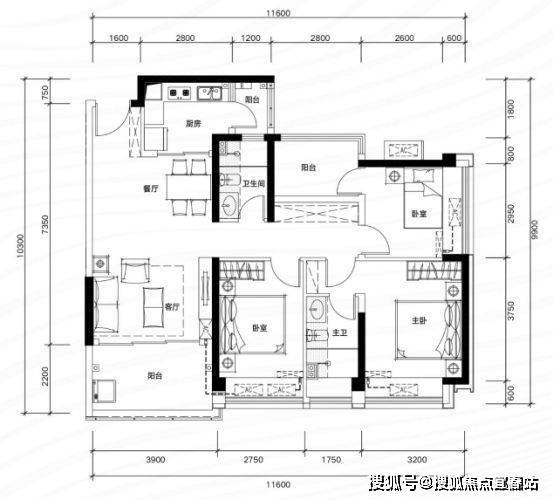 ✅ B06 户型:约109㎡ 阔绰四房两厅两卫: