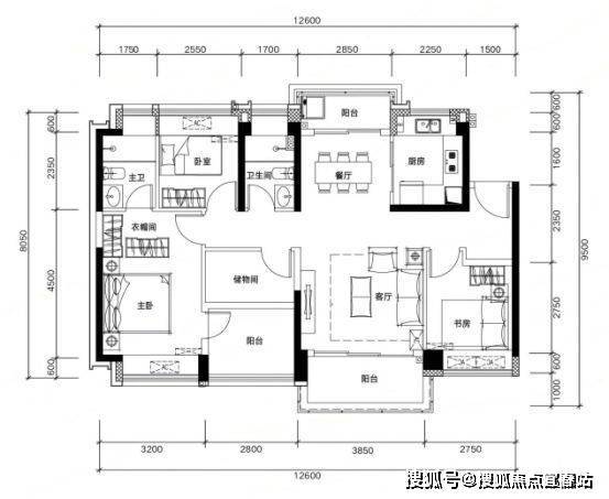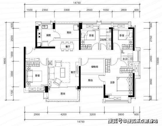 89㎡四房两厅两卫,同等面积多一间房,二孩家庭也能三代同堂。