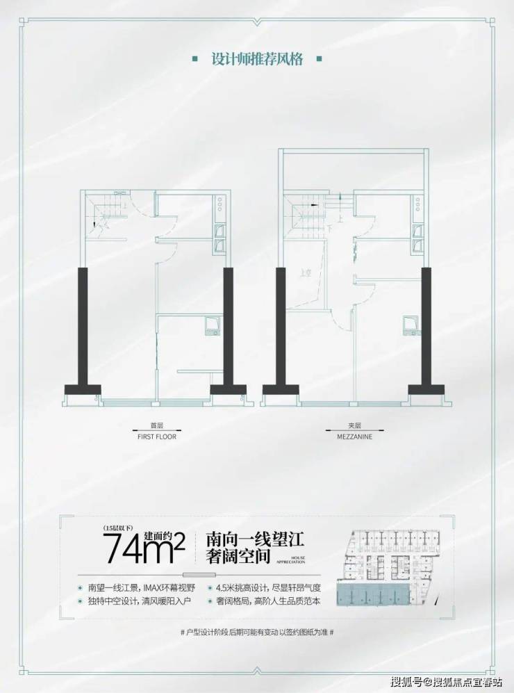 建面约74㎡南向一线望江LOFT(可明火)