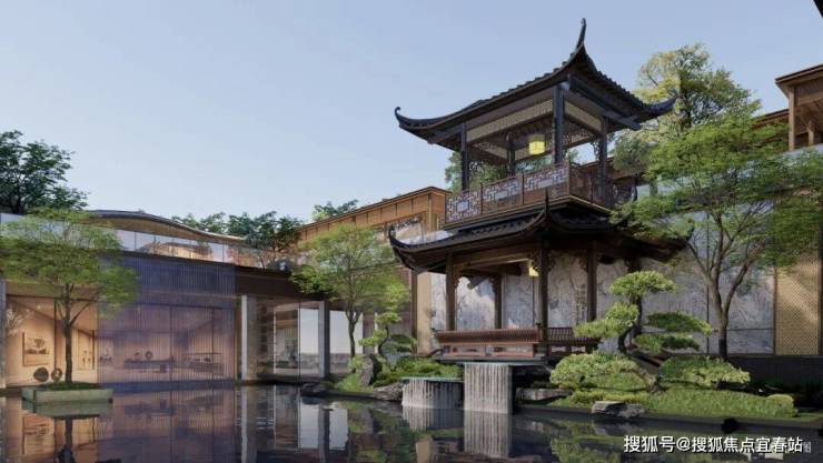撷取岭南名园的亭台形制、楹联精髓,打造半边亭、景墙、名联等中式造景,每一块奢石都如名贵的山水画,每一扇花窗都是开阖的岭南史。一方可感知、可参与的游憩场所,终成既有古意,又见新境的岭南美学园境。