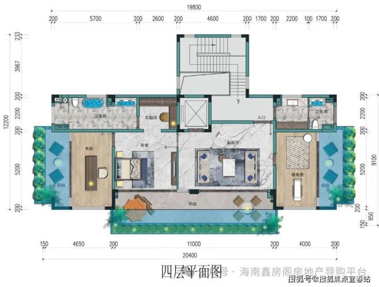 四层:(建面约:160㎡,赠送面积:45㎡)