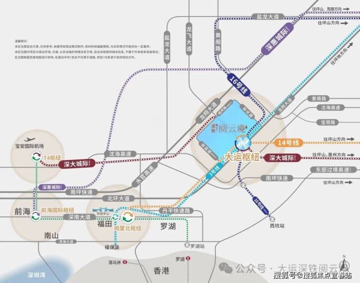 直连大运枢纽,东部唯一集城际、快线、普线于一体的交通枢纽,四轨交汇,3/14/16号线(已开通)和深大城际 (建设中),畅达全城。