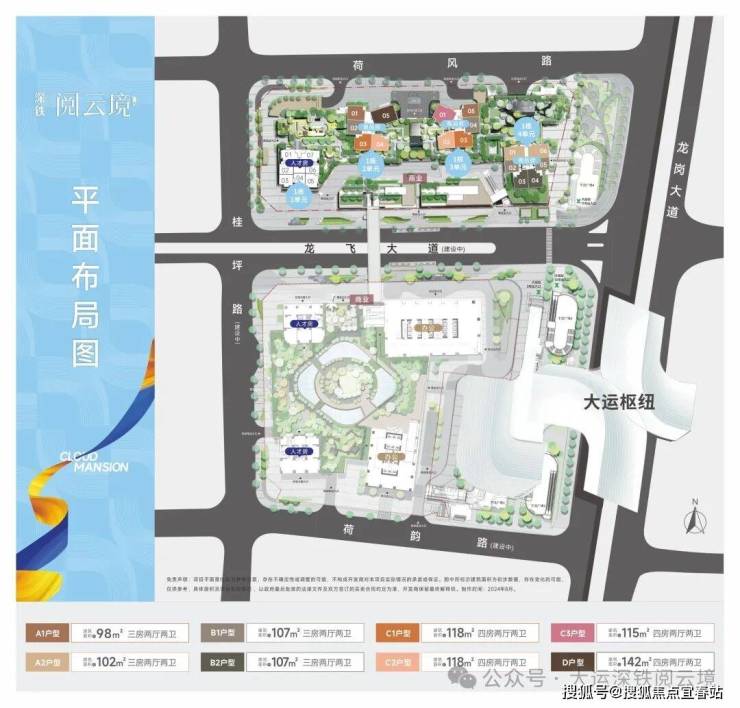 深铁阅云境广场,作为大运交通枢纽上盖物业,总占地面积约5.66万㎡,总建筑面积约51万㎡,以龙飞大道为界共分南北2期开发,有空中连廊相连,北区建设住宅小区,南区兼顾了公共性和便捷性,主要规划超高层办公写字楼和大型商业mall。地处大运枢纽核心地段,也是东部中心首个满足复杂性成熟+商业逻辑的大型TOD综合体项目。