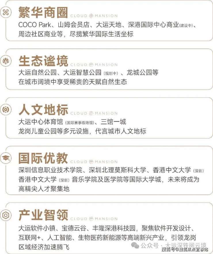 大运新城-深圳东部唯一“城市会客厅”,与前海中心、深圳湾超总、香蜜湖金融街等区域并列深圳六大城市会客厅,汇聚东部大型综合交通枢纽,标杆性文化体育场馆、产业精英商务群、国际大学城等优势,大运新城将成为深圳东部重要发展极点,推动深圳东部增长。