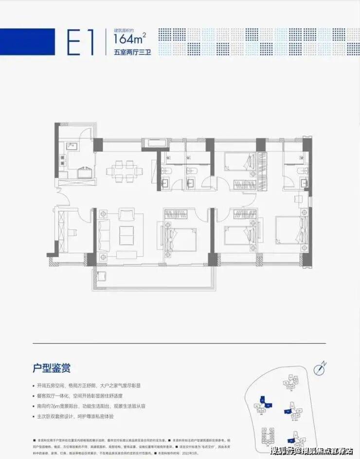 【泓园E1户型】约164㎡五房两厅三卫