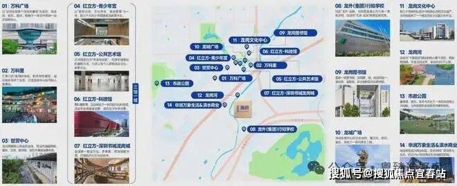 项目周边3公里范围内形成了成熟的高端商务集群,已建成万科大厦、万科时代广场、龙城金地中心、花样年龙年广场、正中时代广场等众多高端写字楼,商务氛围浓厚。同时,驾车10分钟内可达大运中心、深圳露台、国际大学城等高端文体配套,直接享受最具人文氛围和国际视野的硬核配套。
