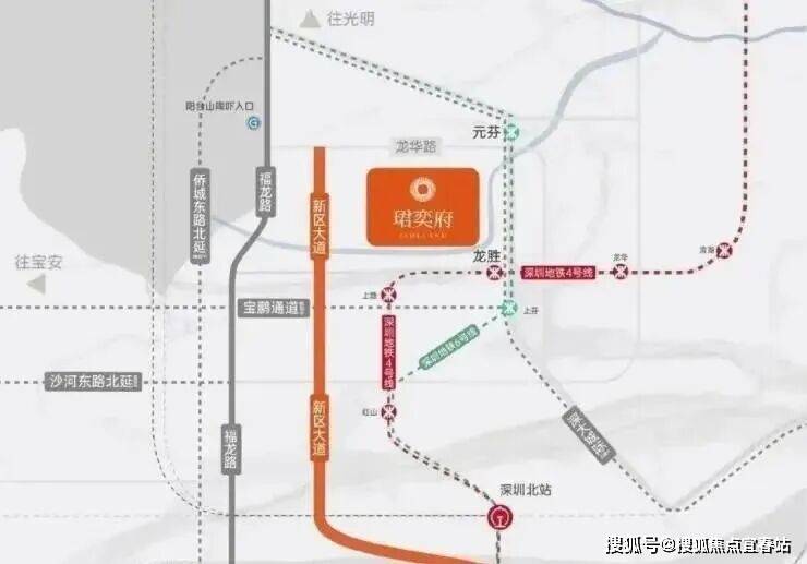 🚗[交通] 龙华-福田-南山构建超级黄金三角,出行更高效3轨道:地铁:约500米4号线龙胜站,约800米6号线元芬站,3站深圳北, 5站福田;城际铁路:深大城际(在建中),3站到机场。1大道:新区大道,7个红绿灯到福田。4干道:福龙路快速路,畅达福田中心;侨城东路北延(在建中)、沙河东路北延(规划中)、宝鹏通道(规划中)畅达南山、宝安,节省约20%通勤效率。