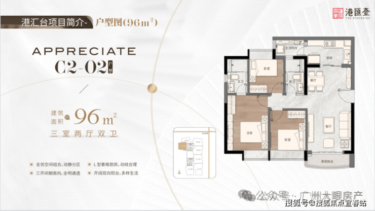 96㎡纯南向三房两厅两卫,全优空间组合,动静分区,三开间朝南,全明通透,L型奢敞厨房,动线合理,开阔双阳台,多样生活