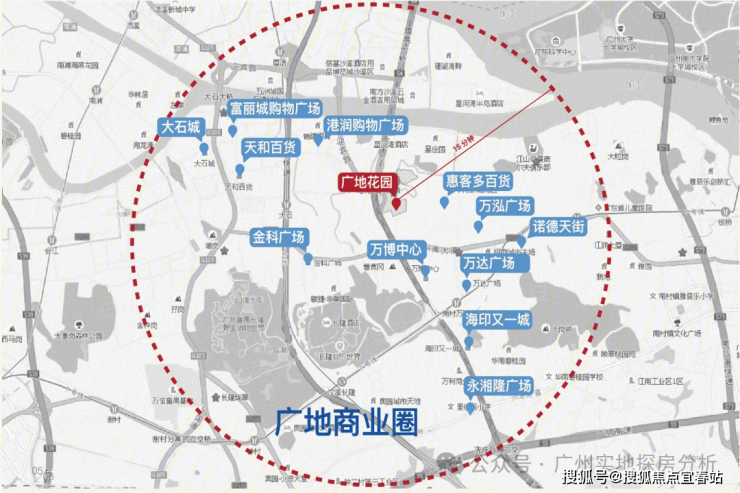 项目规划超1万㎡的商业Mall大概10分钟的车程,那边还有万达、天河城、海印四海成等。