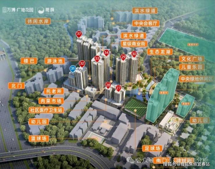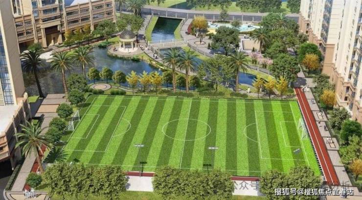 楼下有儿童乐园、运动健身区、约2900㎡足球场泳池、文化广场、邻里空间等,住宅架空层还有泛会所。