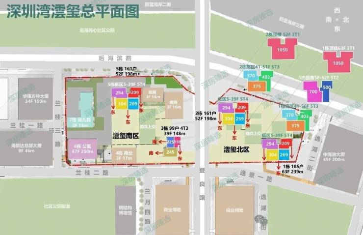 开发商为华润置地与中国海外发展,物业公司待公布。项目位于南山区后海总部基地逸湖二街与后海滨路交汇处,占地面积 3.9 万㎡,总建筑面积 26.3 万㎡,容积率 7.59,产权性质为 70 年住宅。产品类型涵盖超高层住宅与公寓,首推 348 套,共 5 栋(4 栋住宅 + 1 栋公寓),楼层高度 48 - 70 层(住宅 150 - 240 米,公寓 250 米),层高 3.3 米,主力户型为 209 - 1050㎡四房以上,得房率超 95%(新规赠送),精装交付,物业费待公布。