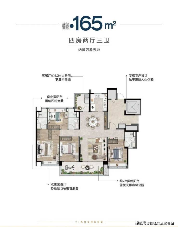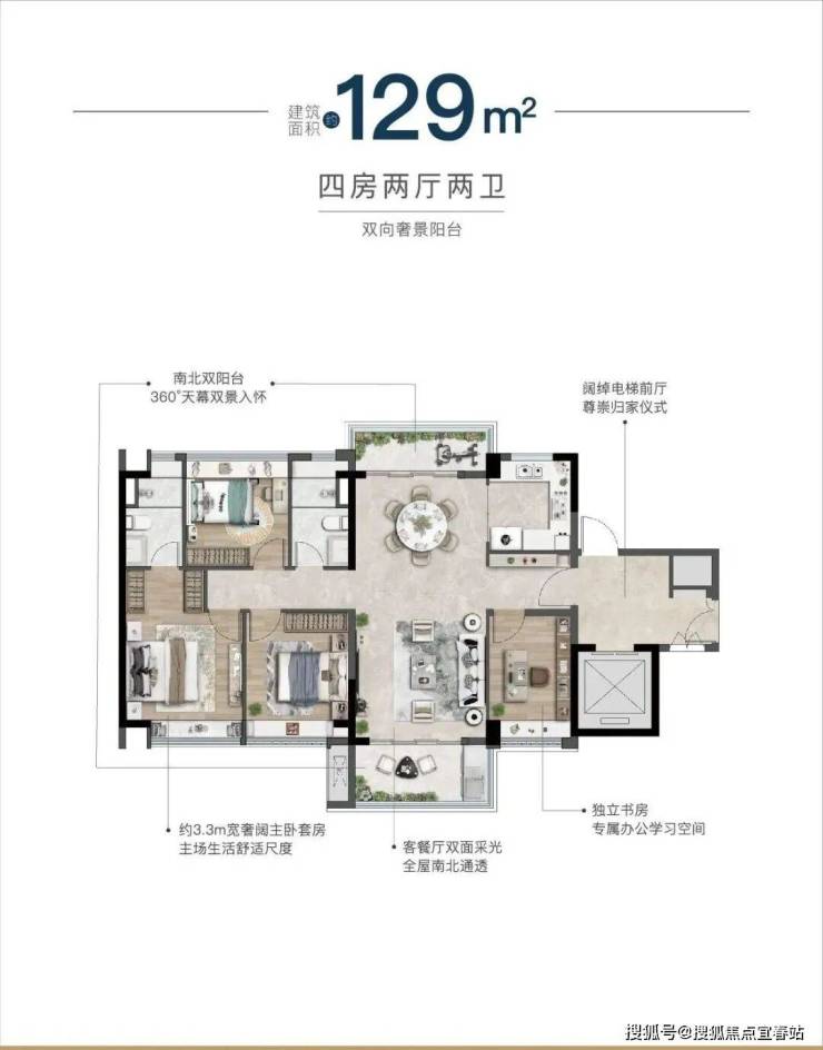 项目为低密度围合式小区,在售 106㎡、129㎡、168㎡三种四房户型,精装修交付。106㎡四房四开间朝南,带入户花园;129㎡四房有 U 型厨房、约 6.3 米大阳台;168㎡四房三卫有双主卧套房等。作为纯改善项目,产品设计贴合改善需求,品质较高。