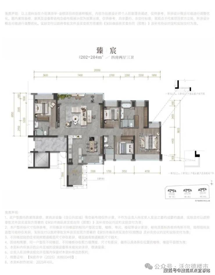 【产品户型】:建面约202-204㎡四房两厅三卫
