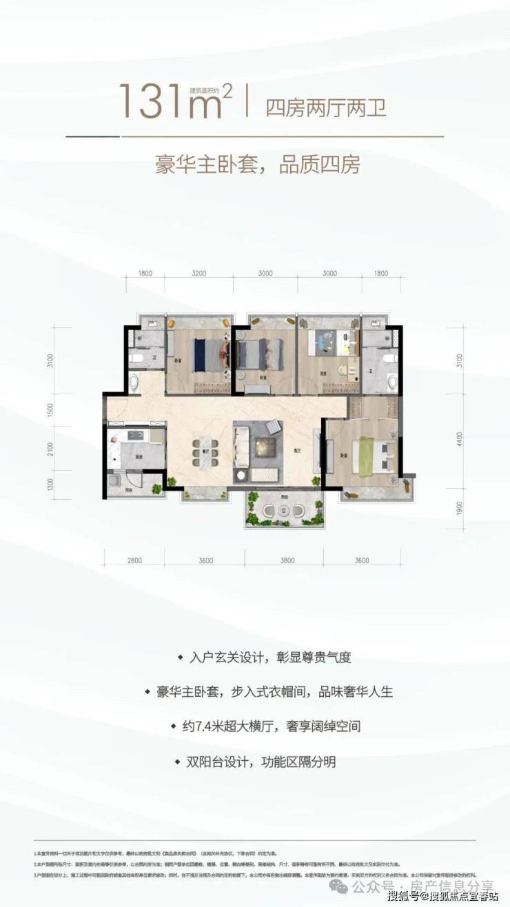约131㎡四房两厅两卫:豪华主卧套间,高端品质四房