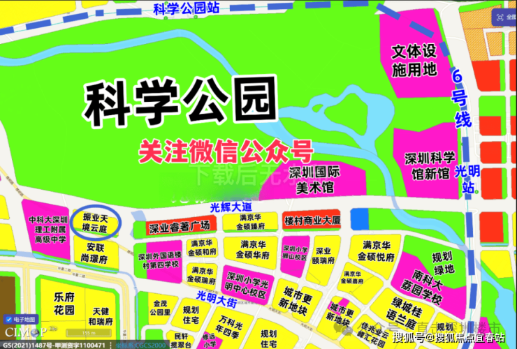 振业天境云庭,位于光明中心区光辉大道与华夏路交汇处西南侧,项目所在的光明中心区是光明规划最宜居,居住小区板块最大的片区,北侧仅靠科学公园,深圳美术馆、深圳科技馆新馆等都是位居于此,距离最近的6号地铁线“楼村站”约950米。
