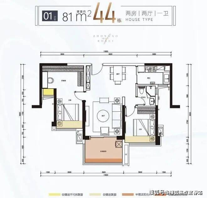户型面积:40 / 41栋 104㎡(朝南) 118㎡(南北)