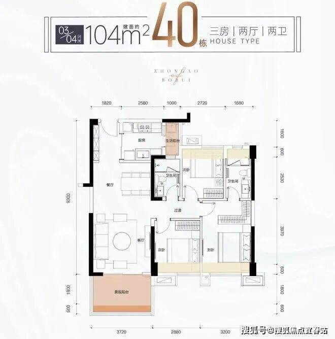 ①104㎡南向三房户型(40/41栋户型基本一致)