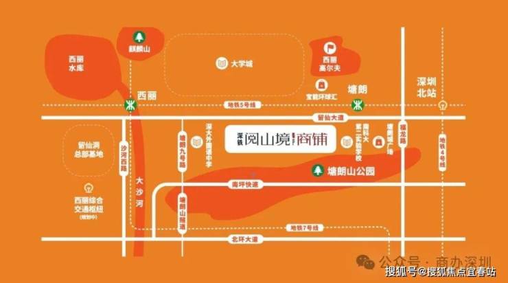 3、交通·枢纽:距地铁5号线塘朗站仅800米,离西丽高铁站和深圳北站高铁枢纽仅一站之隔