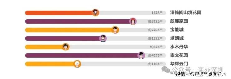 【高阶住区环伺 约17000精英家庭在此】自带1623户高净值业主,毗邻宝能城、朗麓家园、华晖云门、崇文花园、塘朗城、水木丹华六大高阶住区,汇聚约17000户高净值家庭