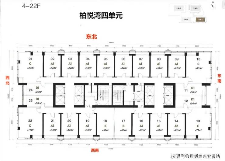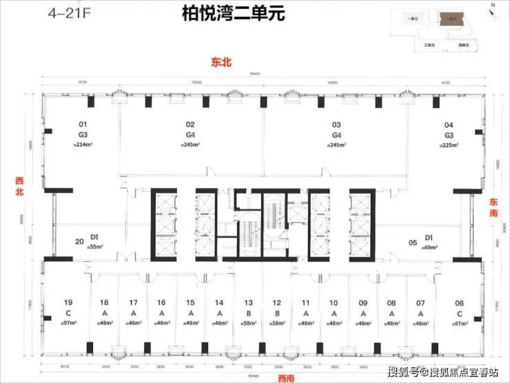 楼层高:1单元5-40层-2单4-43层元商办43层,3-4单元4-48层