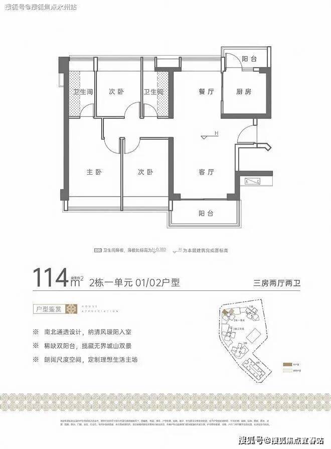 110-114㎡三房两厅两卫:全屋品牌精装,U型厨房+生活阳台,适合改善型家庭