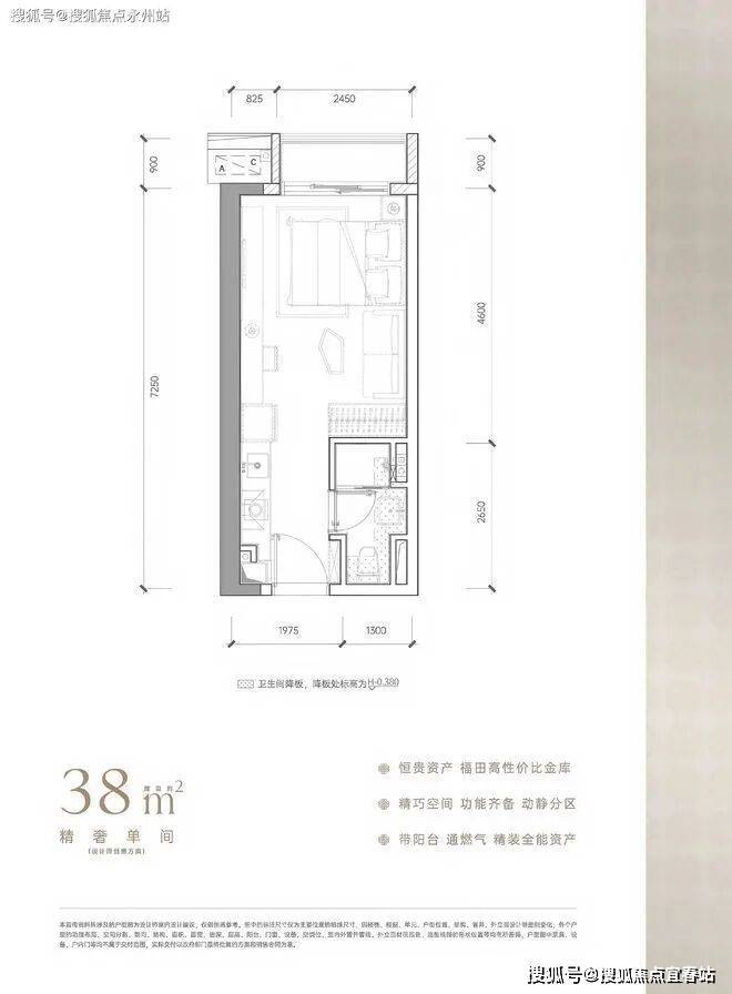 38㎡单房一厅一卫:麻雀虽小五脏俱全,带阳台通燃气,卫浴干湿分离,可改造为小两房
