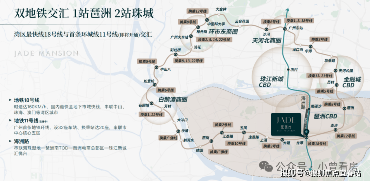 从项目出发,1 站可达琶洲,2 站可达珠江新城,3 站可达金融城。