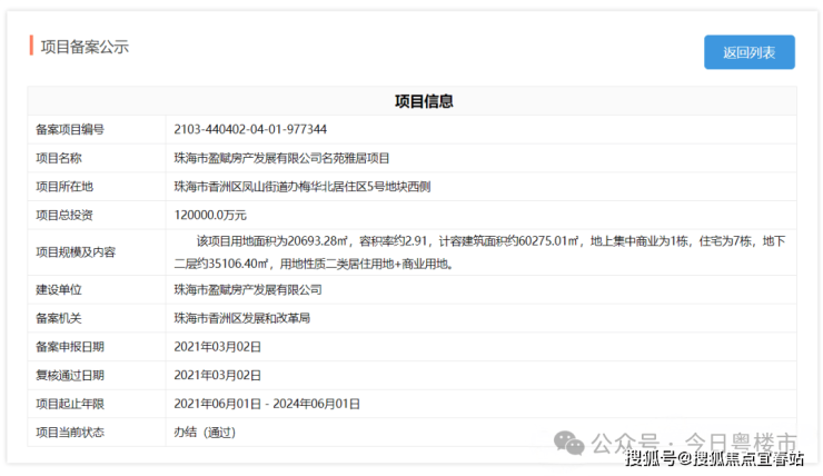 该项目在2021年就开始备案了,总投资12亿元,面积为20603平方米,容积率为2.91.