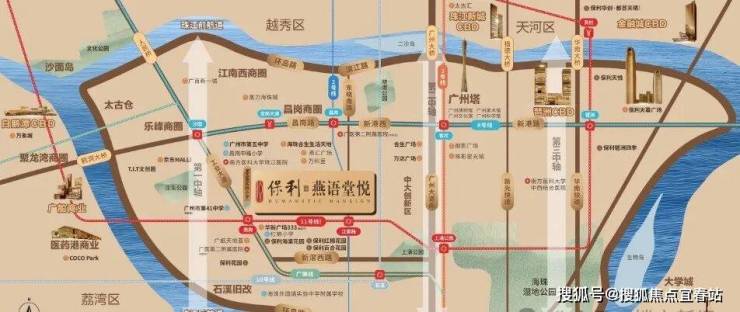项目坐落于工业大道中,背靠珠江后航道,傲立于海珠新活力文商旅融合圈与广州市“首个”后航道服务型制造创新带交汇的核心地带,海珠后航道将成为海珠未来唯一连片开发的豪宅板块。环拥整个海珠乃至广州最顶尖的产业、商业、文旅资源,最为宜居的纯粹居住区,媲美“法国左岸”,凝聚海珠特有的文化发展脉络与基因,既能共享中央活力区和广佛高新技术园区双向红利,又能尽收老城醇熟烟火。