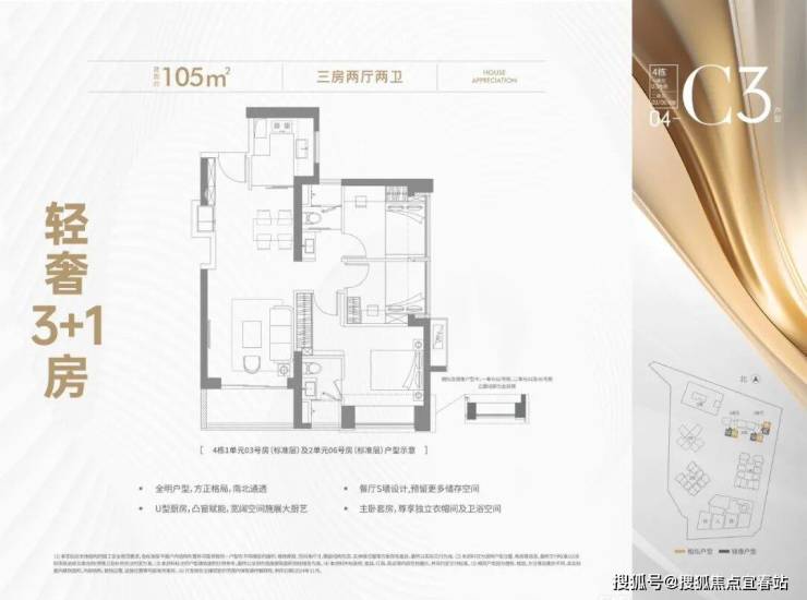 可售户型:103㎡三房两厅两卫、129㎡四房两厅两卫