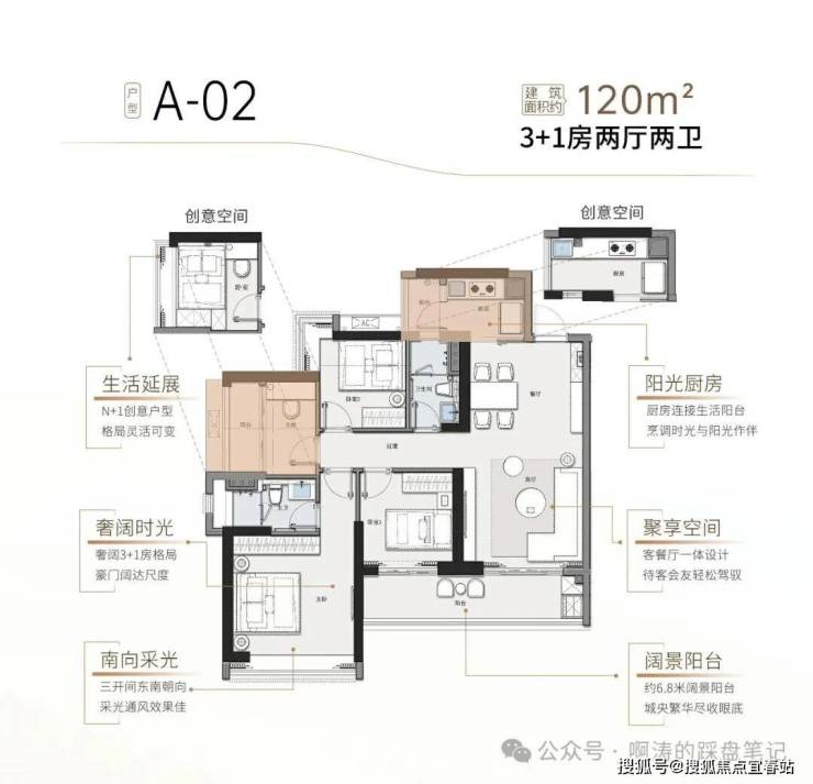 A-02 建筑面积约120㎡ 3+1房两厅两卫