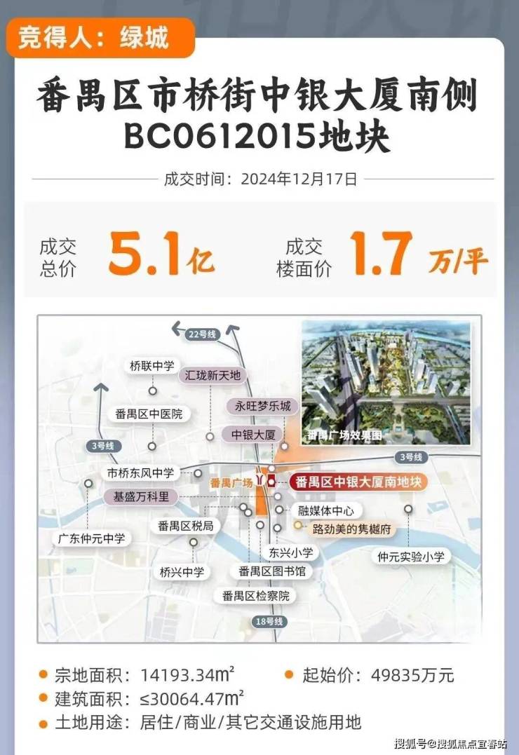 2024年12月17日绿城拿下番禺广场中银南侧地块,总价5.08亿,楼面价1.7万/平!(未扣除配建,按总建面计算),地块北侧,就是广州赫赫有名的蟑螂大厦——中银大厦