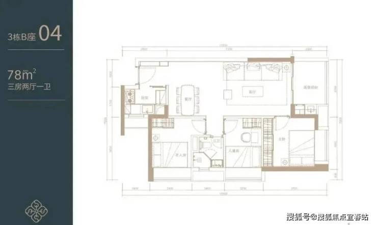 关内典藏主力户型:建面约78-81㎡3房2厅1卫(住宅)