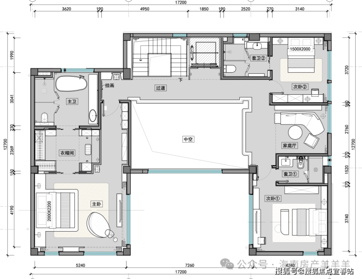 C户型(U字型)建筑面积:约175㎡,5房4厅7卫+2保姆房+2车位+1庭院泳池,使用面积968m²-1297m²