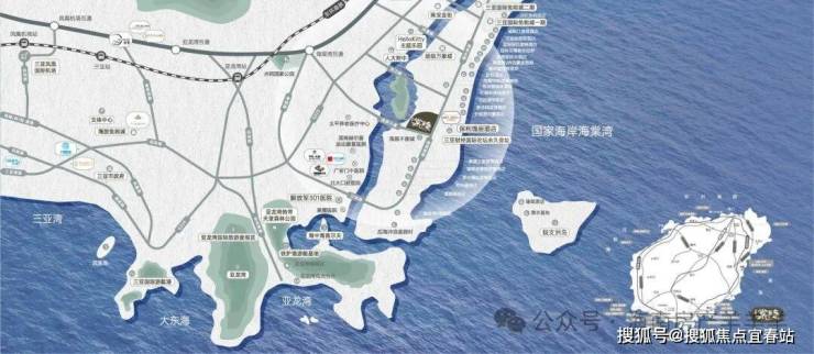 海棠湾核心地段,临海面河,玉带缠腰,河海汇聚呈“敛财”之势,背靠中国30000公里海岸线上最高的地标建筑保利瑰丽酒店,远侧是连绵起伏的环山,藏风聚气,得水为上,上风上水的绝佳风水宝地;