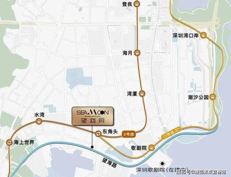 望海玥项目具体位于望海路和湾厦路交汇处,蓝漪花园以东、蛇口老街以南,毗邻蛇口广场,与地铁2号线及13号线(建设中)东角头站相距约200米。